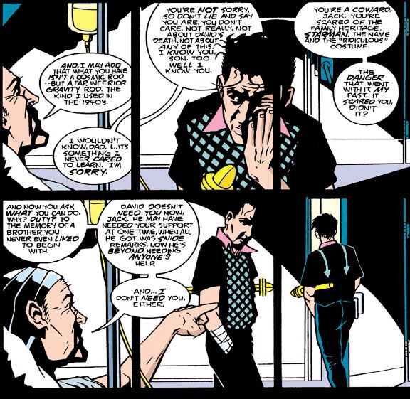 These were stories that were somehow antithetical to the weekday afternoon adventures that superhero comics offered at that time. They pushed the envelope beyond what Batman meant to Nightwing, what Hal Jordan meant to Guy Gardner, what Ted Knight Starman meant to Jack Knight Starman.