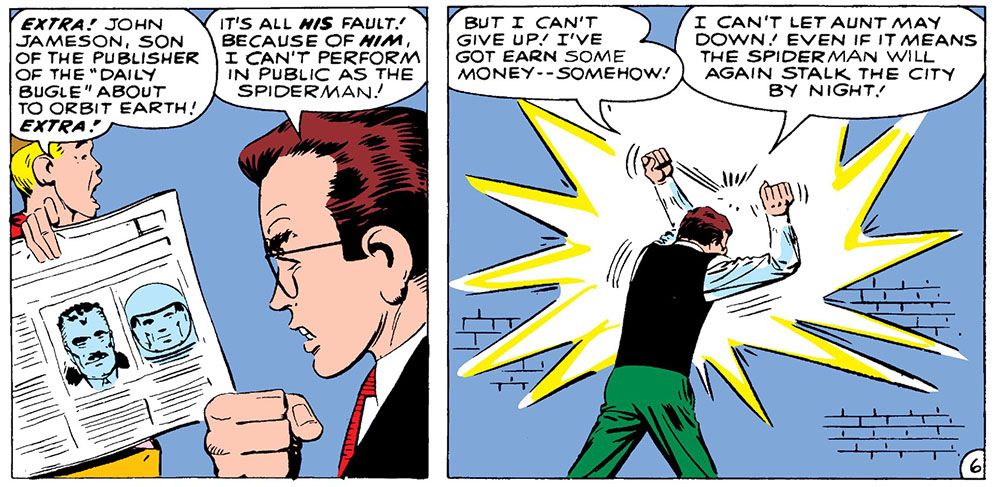 Second – yet just as important – at the heart of Peter Parker’s origin story as Spider-Man, family remains most important. Long after Peter gained the powers that would make him Spider-Man, his care for Aunt May would remain constant.