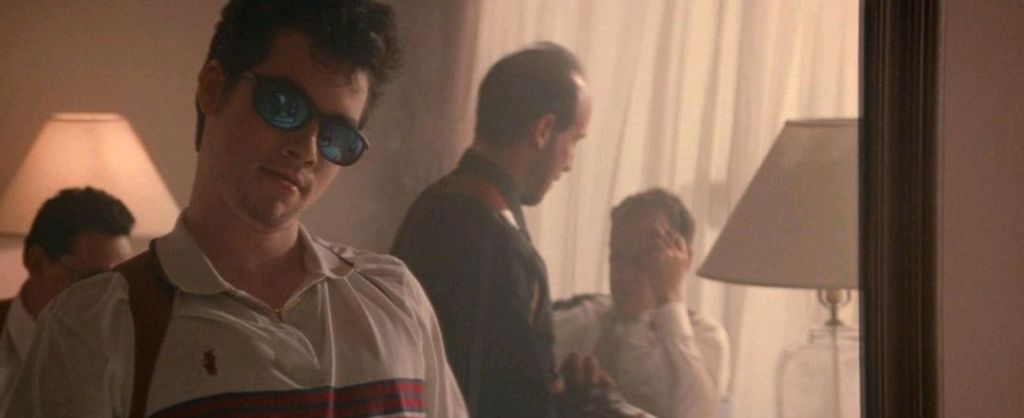 In a brief moment leading up to the showdown at the Beverly Ambassador, Blue Lou Boyle’s men smoke cigarettes, load their handguns, smoke more cigarettes, load their shotguns some more, and smoke even more cigarettes. And while the majority of the henchmen steel themselves up in silence, perhaps chatting about the latest in sports news, one young gangster postures in front of a body-length mirror, pulling his greased hair back and staring back at himself behind the comfort of his sunglasses.